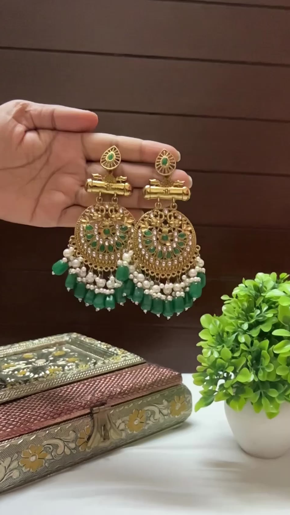 Lightweight yet luxurious, these earrings are ideal for weddings, festive functions, sangeet, mehendi, and traditional celebrations. Their versatile color combination pairs effortlessly with green, white, gold, or neutral-toned outfits.